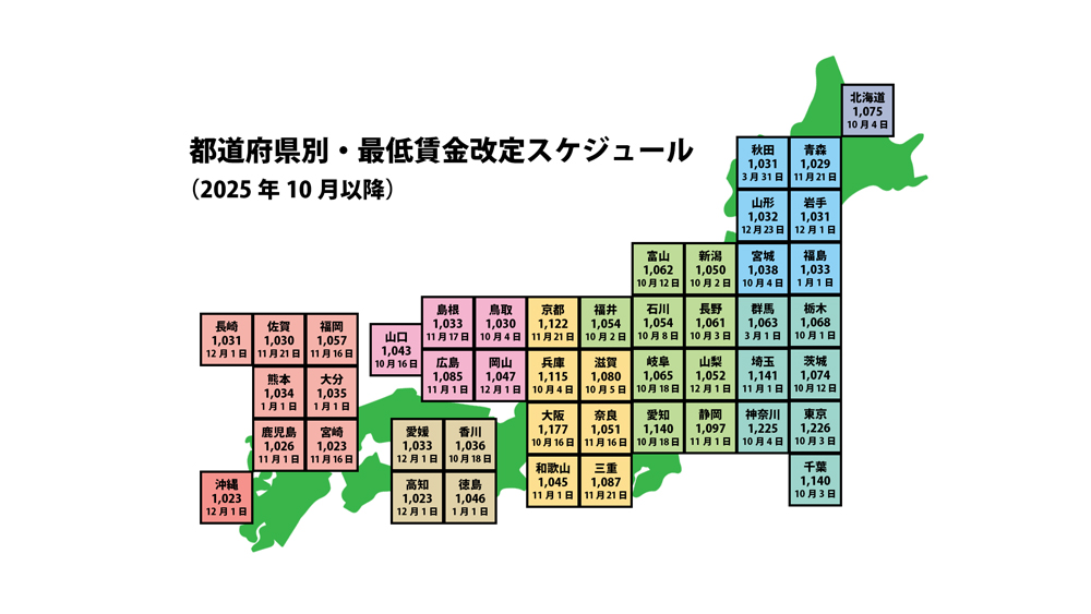 2025年10月以降 都道府県別の最低賃金が変わる日